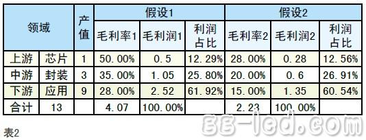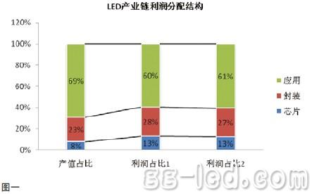 下面我們舉例說明LED產業鏈利潤的分布情況: