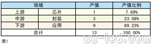 從表1中可以看出,上游芯片產業占整個產業鏈的產值比例僅僅位7.69%,即使將上游的襯底(主要為藍寶石)也算成上游,由于襯底僅僅占芯片成本的10%左右,所我們可以得出上游領域占整個產業鏈的產值比例也不過10%。而下游應用領域卻占近70%的產值比例,在某些應用領域其比例甚至更高。