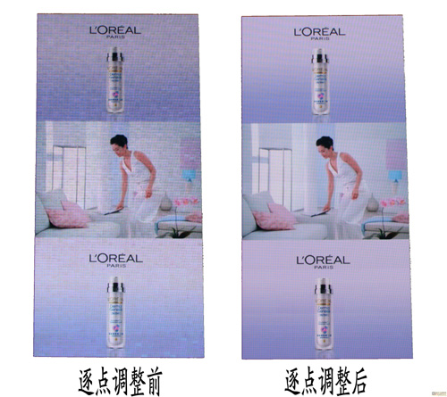 目前為止只有“逐點調整”技術能夠比較好的調整整屏顯示均一性。而且,成熟的逐點調整技術可以實現不同批次生產的LED混合使用,并且整屏顯示均一性良好。