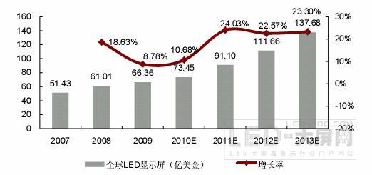 1、2007-2013 年全球 led顯示屏市場規(guī)模