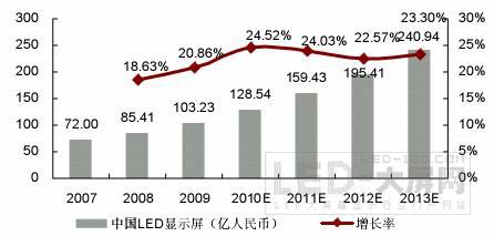 2、2007-2013 國內(nèi) led顯示屏市場規(guī)模