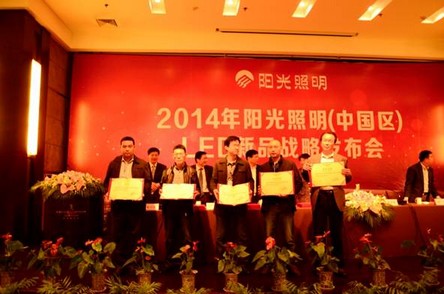 2014年3月19日,陽光照明在浙江召開了2014年(中國區)LED產品戰略發布會,中國照明電器協會劉升平理事長,上海時代之光副總經理俞安琪,陽光集團副董長陳衛,陽光集團總經理官勇,陽光集團副總經理吳國明,陽光集團副總經理章澗中等行業、政府和公司相關領導出席了本次會議。
