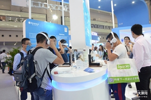 柔宇展位,設計風格延續了亮眼的柔宇藍,搭配純潔的白色。精致、現代的展位裝潢成為高交會館內的一道別致風景。本屆高交會,柔宇展出了 9月23日最新發布的800英寸弧形巨幕3D頭戴影院——Royole Moon以及柔性電子系列產品,如柔性電子弧形汽車中控臺、柔性PC等。