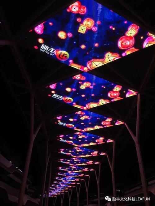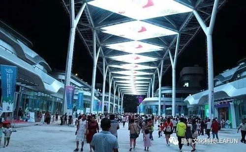 天幕商業街設計長度450米,LED屏總面積超過3744個平方,單塊顯示面積達到了104平方。這是目前世界異型天幕中面積最大、長度最長的天幕街。