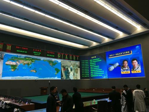 在北京航天飛行控制中心,上海三思提供面積逾200m²的P1.47U型小間距高清LED巨屏,作為天地視頻通話的顯示平臺,承擔了習主席和神舟十一號航天員可視通話的重任,并歷經64天、1536個小時的“零故障”全天候顯示,憑借高可靠性及優異的顯示性能,成為中國航天傳奇的參與者與見證者。