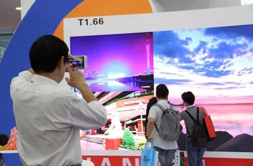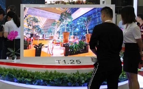 大家隨意拍,強力巨彩高密度(小間距)T1.25、T1.66配備高清高階PWM驅動IC,刷新率≥3840HZ,拍照不閃,走字不抖,低亮高灰,對比度高,灰度可達14-16bit,色彩還原性好,顯示超高清,細節顯示細膩無比。它模擬安防監控應用,顯示屏一分為五,無縫拼接顯示,成為我們本次展會的吸睛利器。
