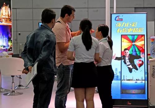 睽麗系列LED展架屏,輕松玩轉音頻、視頻、圖片、文字播放,可橫屏、豎屏、全屏、分屏播放,可吊裝、斜撐、坐裝,更另觀展人員贊不絕口的是它可以實現移動端和PC端智能操控,開展第一天就廣受國內外客戶關注。