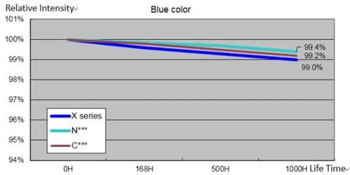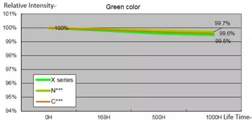 高溫65°、20mA條件下,1000時的光衰測試,與國際著名廠家LED基本持平
