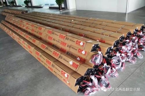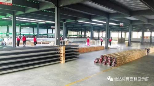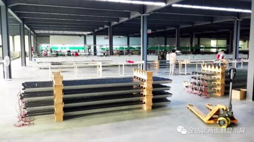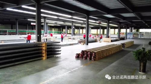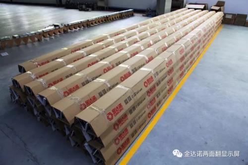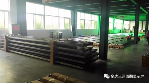 近期金達諾兩面翻顯示屏訂單不斷,寧夏銀川220平方米、廣西北海95平方米、廣西北海230平方米、安徽界首185平方米、四川綿陽110平方米、江西宜春220平方米、浙江溫州450平方米。6地7屏共計1510平方米訂單井然有序地投產(chǎn)下線,目前生產(chǎn)二線工人已全部到崗,兩條生產(chǎn)線正開足馬力全速運轉(zhuǎn)。為了趕訂單,公司取消周末休息,兩線工人全部加班生產(chǎn)。
