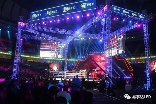 本次活動使用易事達(dá)戶內(nèi)輕翼P3.9系列-300㎡,打造精美的舞臺呈現(xiàn)效果。舞臺有了LED屏幕的輔助,讓觀眾得以暫時離開所有的喧囂,只沉醉在獨(dú)一無二的拳擊比賽當(dāng)中。