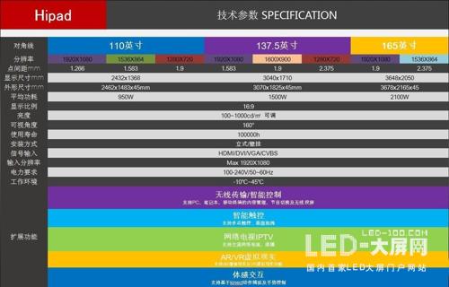 Hipad系列將屏體厚度降低至45mm,重量僅有7kg,超薄、超輕。拒絕邊框,完美實現無縫拼接技術,其尺寸可達110”/165”/220”/270”,亦可發揮創意定制設計,兼容非標準尺寸。