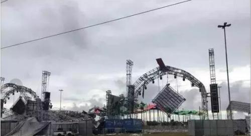 但近些年來,無論國內國外,舞臺安全事故仍屢見不鮮。不久前,在巴西南部的南里奧格蘭德州(Grande Grande Do Sul)舉行的Atmosphere Festival電音節(jié),由于強風超過了舞臺的風阻能力,導致倒塌。造成表演DJ頭部受創(chuàng)死亡,三人受傷。