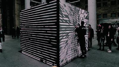 《OMNIPRESENCIA》是一個4平方米的LED屏交互式裝置,當觀眾站在作品前,會看到無數(shù)個自己,那些“自己”仿佛置身于另外的時空,和“現(xiàn)實”中的自己有著剪不斷的聯(lián)系。