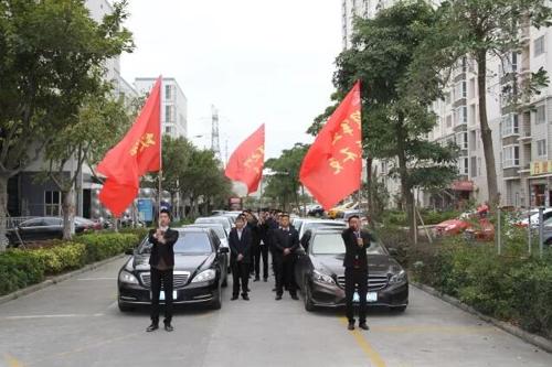9:30,翔安火炬園入口豪車列隊,伴隨著飄揚(yáng)旗幟緩緩駛?cè)霃?qiáng)力巨彩大門。