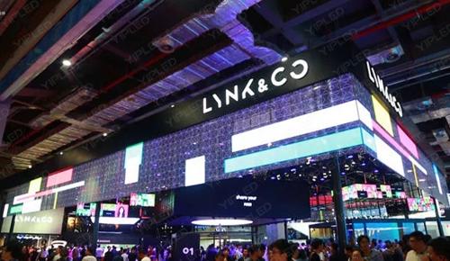 在LYNK & CO展臺,由壹品冰屏吊掛而成的三面圍合LED透明屏,全面顛覆傳統的視覺影像,讓酷炫視覺震撼眼前。用透明影像詮釋著新時代汽車安全、互聯服務與用車方式。