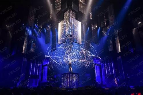 懸掛在舞臺上空的80組透明·冰屏,可以上下左右進行移動,配合酷炫的動畫3D特效,在演唱會當晚呈現出無比夢幻和極具震撼的視覺效果。