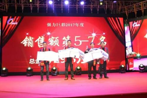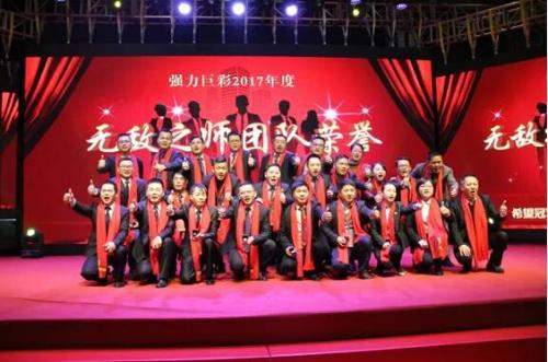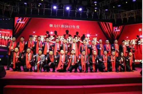 2017年,強力巨彩銷售額勇冠群雄,離不開虎賁之師的辛勤付出,必須大大的有獎。年度銷售總冠軍用一段攻占塔山的電影橋段重演,演繹了奪冠路上的風雨兼程。