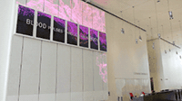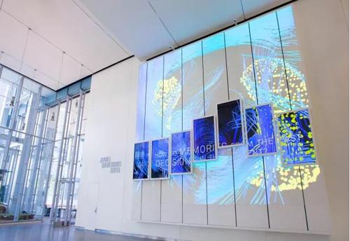 在哥倫比亞大學杰羅姆·格林科學中心的公共大廳中,有7塊72英寸的顯示器在墻上“爬行”,該交互式數字裝置作品《The Brain Index》由空間研究中心的Laura Kurgan、Mark Hansen和新媒體工作室 AV&C 共同創作。他們將藝術、科學、數據、通過講故事的形式和信息設計結合起來,讓你看懂大腦的活動和作用。