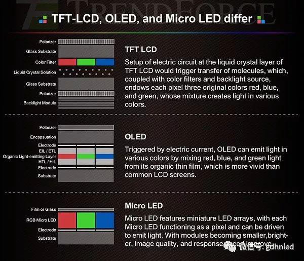 Micro LED/LCD/OLED優勢對比(圖片來源于網絡)
