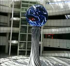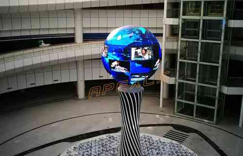 康碩展LED伸縮球形屏是集機械原理、傳動原理、控制原理、信號傳輸系統與LED顯示的科學組合。LED球體內部采用獨立動力傳動機械設備,整個LED球形屏由多個可以單獨運動箱體按照整體球形結構進行設計制作。每一個箱體安裝在一根單獨的機械臂上,而每一個LED箱體都可以獨立播放一個完整的視頻畫面,而全部箱體組合成一個整體球體也可播放同一個視頻畫面,且可以進行有規律地伸縮,當伸展開來呈現綻放式,而當收縮時,是一個球體。