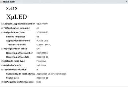 最近一次申請注冊Micro LED屏幕商標,是在今年3月底。據(jù)悉,LG在歐盟為其Micro LED顯示器注冊了三個新商標,并且提交了必要的文件。這三個商標分別是XLμLED、SμLED及XμLED。