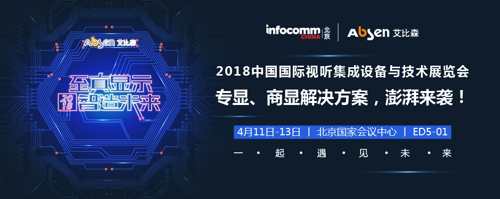 4月11日至13日,2018 InfoComm China將在北京國際會議中心隆重舉行。艾比森將攜超8k小間距CR1.2、商顯領域明星產品A2715、行業革新產品PL1.9等在E展館D5-01展位以“至真顯示智造未來”的主題精彩亮相,并現場帶來艾比森專顯、商顯應用解決方案和炫酷互動體驗。