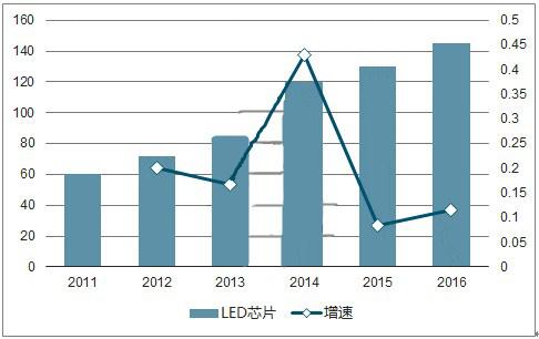 統計數據顯示,2016年中國LED芯片行業市場規模超過145億元人民幣,同比增長11.54%,2016年下半年開始至2017年價格止跌并穩健上漲。隨著中國大陸廠商產能的提升,以及技術上與臺灣的差距越來越小,價格、交期、市場反應迅速等優勢明顯,2008年-2016年LED芯片國產率從50%提升至80%,達到了106億元,進口則為33億元。由于大陸芯片廠商性價比優勢明顯,出口比率也有所提升,2015出口率為8.1%,2016年則提升至9.6%。