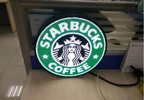 星巴克標識的這款圓形屏產品邊框尺寸就很小了,遠距離看的話,幾乎可以忽略掉了,只有1公分這樣的一個厚度。不僅僅是這款小直徑的logo展示產品,很多場合的應用對圓形屏邊框尺寸的要求是很嚴格的。