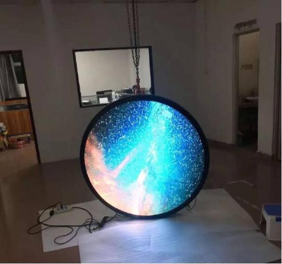 第2種產品方案的產品那就不需要重新開模設計了,是用常規LED顯示屏單元板產品通過箱體結構的處理,再配合控屏軟件的設置來實現圓形顯示的效果。簡單的理解就是圓形屏是通過包邊包出來,幾何角度來講不算根本不算是圓形的形狀。