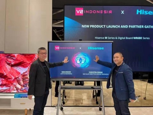印尼作為亞太市場的重點區域,此前,海信商用顯示已在印尼市場提前布局,持續深耕。今年3月份,海信印尼公司與當地知名的專業視聽渠道商V2公司聯合舉辦新品發布會,多家當地知名媒體進行報道。發布會上,正式發布海信Vision Hub智慧平板、海信Vision Flip數字標牌新品等,雙方共同確認了高達數百萬美金的專業顯示設備合作方案,將攜手在印尼市場持續發力,合作共贏。