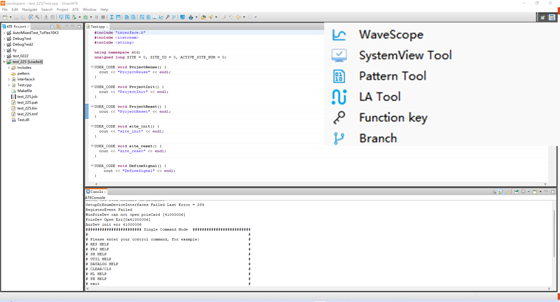 此外,配套的ATE軟件系統Flex-IDE,提供行業主流開發環境,且內置豐富的開發和調試工具,方便客戶進行測試程序高效開發調試。