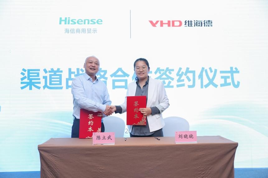 活動(dòng)最后,海信商用顯示與維海德進(jìn)行渠道戰(zhàn)略合作簽約儀式。雙方表示,在數(shù)智化變革的當(dāng)下,海信智慧辦公將和維海德攜手起來,不斷探索更多細(xì)分辦公場(chǎng)景的數(shù)字化升級(jí),共同研發(fā)音視頻技術(shù)與產(chǎn)品,助力合作伙伴的共生共贏。