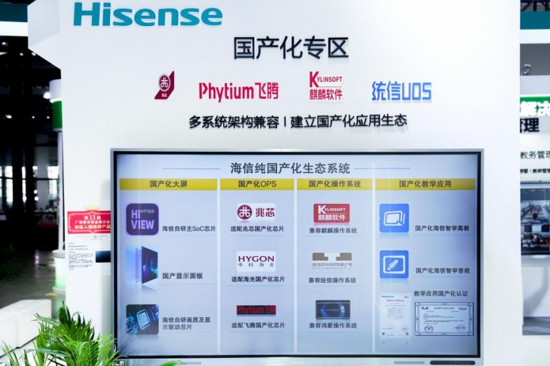值得一提的是,海信還在現場打造國產化展區,攜純國產化觸控顯示器亮相,引來諸多圍觀。據介紹,海信純國產化觸控顯示器基于自研SOC芯片,并與統信、麒麟等主流操作系統實現深度兼容,確保了全鏈路國產化與多系統之間的無縫銜接。該產品搭載專業智感護眼系統,在采用全貼合工藝的基礎上,更搭載無頻閃技術、智能觸感護眼技術、軟件護眼模式等,呼呼師生用眼健康。